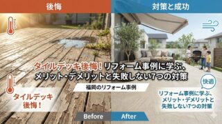 福岡でリフォームをご検討中の皆様、リビングから一歩外へ出たときに広がる開放的な空間に憧れはありませんか。近年、リビングの床面と屋外のデッキを同じ高さでつなげる「フラット施工」が非常に人気を集めています。特にタイルデッキは、その高級感と耐久性...