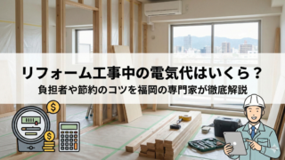 リフォームの基礎知識 リフォーム工事中の電気代はいくら?負担者や節約のコツを福岡の専門家が徹底解説 福岡県内でリフォームを検討されている皆様にとって、工事費用の総額はもちろんのこと、工事期間中に発生する細かな費用も気になるところではないでしょうか。特に「リフォームの工事中は電気代がいくらくらい上乗せされるのか」という疑問は、家計を預かる方... リフォームの基礎知識