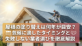 これらの制度は申請期間が限られていたり、予算に達し次第終了したりすることが多いため、検討段階で早めに業者へ相談することをおすすめします。